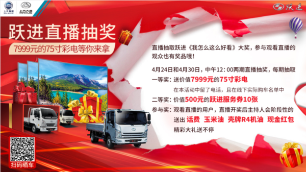 (线上每下单30辆,从所有线上下单用户中随机抽取2人送价值5488元手机一部,由卡车之家联系中奖用户,与就近线下门店取得联系达成协议后,手机以快递形式发送)
