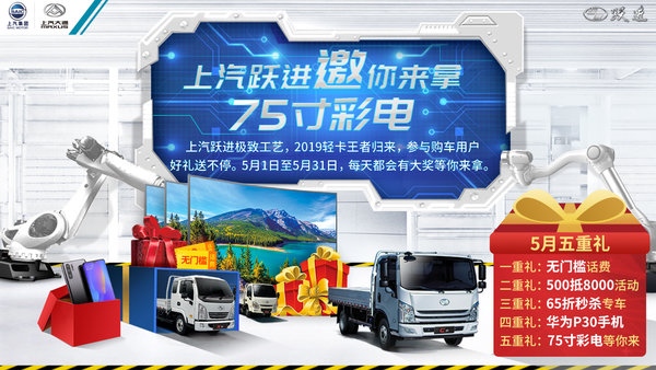 5月1日,“上汽跃进极“智”工艺,2019轻卡王者归来”专题即将上线,参与购车用户好礼送不停!