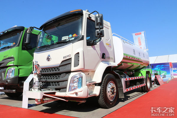 本届展会以“绿色 智能 高效 环保”为主题,为了协助雄安快速发展建设,在乘龙汽车展台上,展出了两款城建渣土车、一款城市洒水车、一款牵引车。