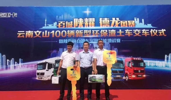 2019年5月11日,云南100辆新型环保渣土车交车仪式暨陕汽杯自卸车实况技能挑战赛在钟灵毓秀的文山成功举行。