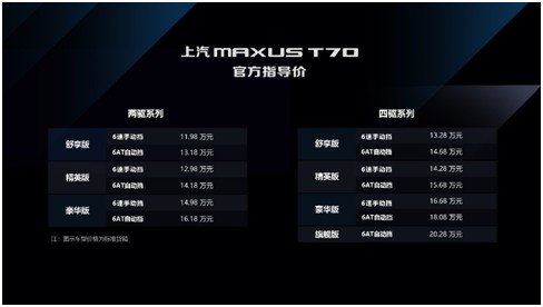 上汽大通MAXUS T70官方指导价