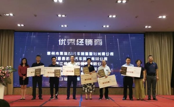 中集联合卡车副总经理汪琳琍、财务总监冯燕、总经理助理张永峰颁发“优秀经销商奖”