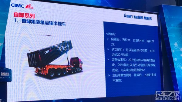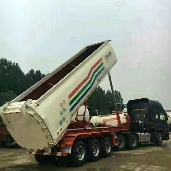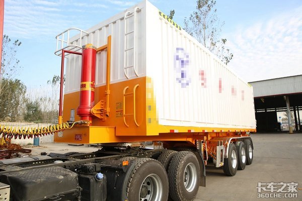 首先,有一种同“平板自卸半挂”几乎一样的车型——自卸式集装箱运输半挂车。这种车型一般是用于运输20英尺集装箱的。平板自卸半挂其实是从这种车型变种而来的,因此许多平板自卸半挂也会被私下成为“集装箱自卸半挂车”。