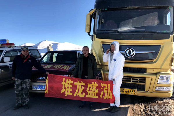 在接到曲央韦色的救援电话之后,西藏东康服务站的站长胡安和当地的东康经销商拉了两车物资、配件、发电机,第一时间赶到堵车点,进行救援。