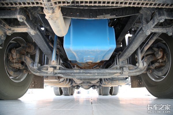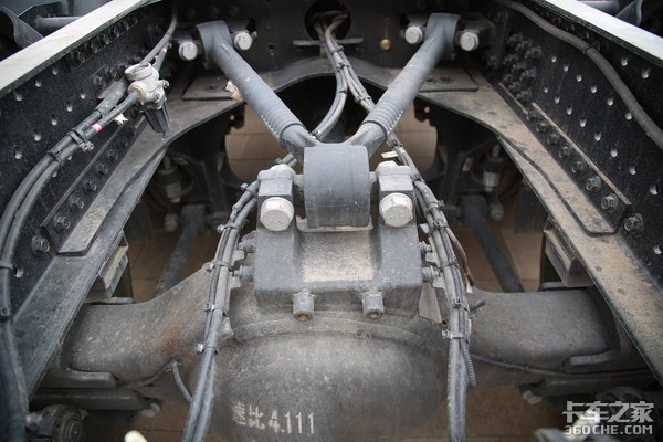其次是M100的底盘设计和细节做工,M100的底盘设计完全可以媲美目前国产的高端重卡,据介绍,M100的底盘借鉴了一些沃尔沃卡车的设计,车架为标准孔的设计,方便安装底盘上的附件,管线的布局非常规整,可以说是目前国产重卡当中最简洁清晰的。