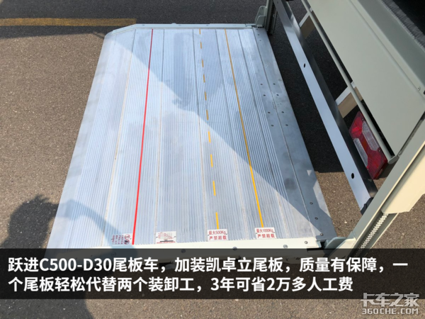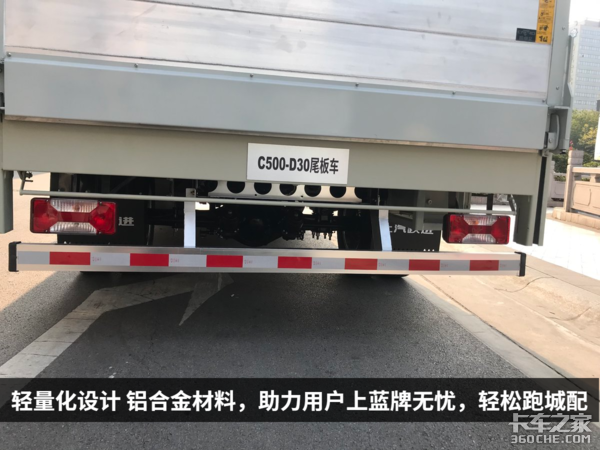 如今,跃进的这款C500-D30尾板车全车采用轻量化设计,铝合金材料,车身自重下降,助力用户放心上蓝牌,做城配运输更轻松。