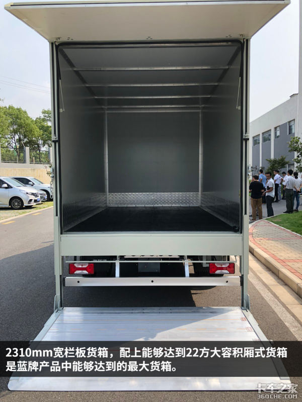 跃进的这款C500-D30尾板车,2310mm宽栏板货箱,配上能够达到22方大容积厢式货箱,是蓝牌产品中能够达到的最大货箱。