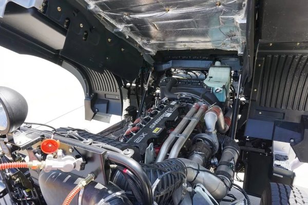 发动机采用福田康明斯X12发动机,国五排放,最大输出功率510马力,在1100-1400rpm的转速区间可以输出2300N·m的最大扭矩。