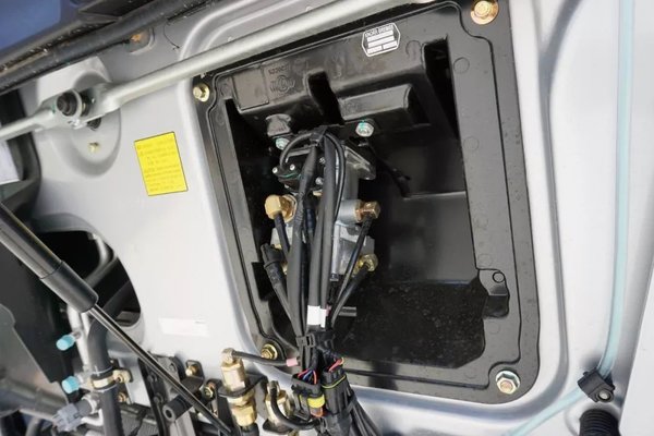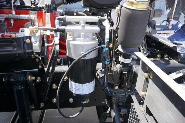 驾驶室采用了双液压顶缸设计,举升更平稳。蓄电池外侧配有副启动开关。弗列加大滤杯的柴滤。