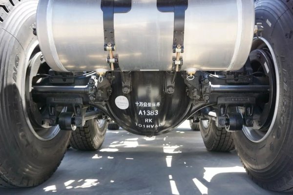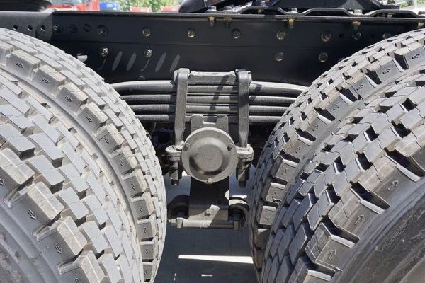 前桥两片板簧,配有横向稳定杆,后悬架采用了四片板簧,玲珑12R22.5轮胎。前桥两片板簧长度很长,配合四点气囊悬浮驾驶室及全新升级的座椅,实际驾驶过程中,舒适性表现值得点赞。