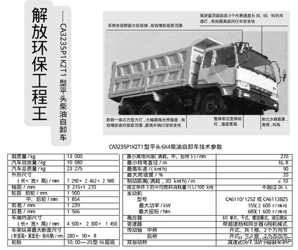 从2001年解放工程王的宣传海报上我们可以看到,当时的配置还没有后期车型那么丰富,使用的还是CA6110和CA6113发动机,匹配6挡手动变速箱。
