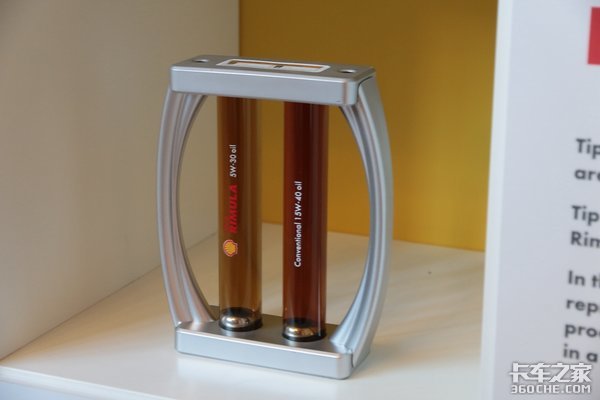 一般来说,机油的粘度等级会对发动机的燃油经济性产生影响——粘度越低,燃油经济性就会越好。在现场的演示器材中我们可以明显地观察出:在壳牌的5W-30低粘度润滑油中,小钢球的运动速度更高,这说明它受到的阻力更小,能量消耗也就会更小。