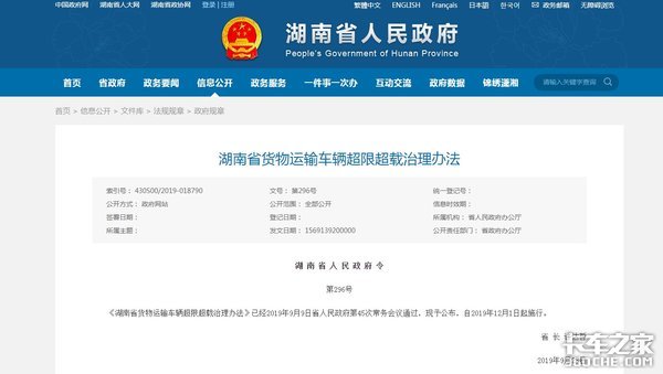 《湖南省货物运输车辆超限超载治理办法》已经2019年9月9日省人民政府第45次常务会议通过,现予公布,自2019年12月1日起施行。