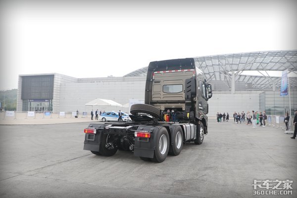 底盘方面,前桥采用6.5吨级鼓式前轴,后桥则为13吨单级减速桥,速比为4.11。除此之外,根据不同运输工况,可提供多种速比配置可选。