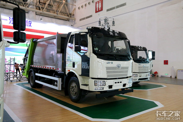 在专用车领域,首先是解放J6L纯电动餐厨垃圾车,这款车搭载T-box智能网联系统,续航里程可达310公里,标配电池加热系统,以满足冬季用车需求。