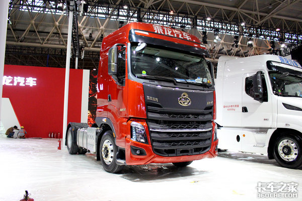 在量产车方面,东风天龙KL6x4牵引车,这款车搭载了DDi11发动机,能够输出465马力的动力,采用空气悬架,并且匹配了车道偏离预警等安全辅助设施。