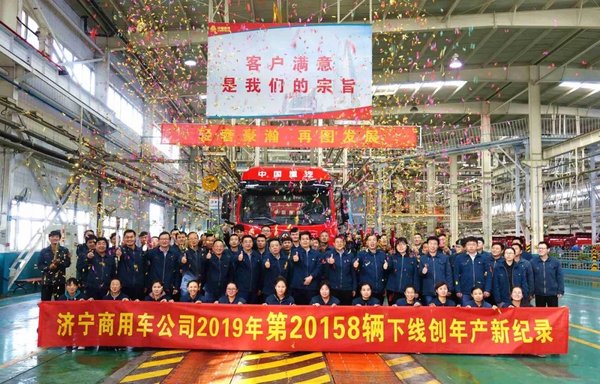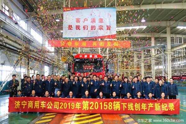 2019年,济宁商用车公司深入开展“质量提升年”活动,坚持以市场为导向,以客户满意为宗旨,狠抓工作质量,深植“一天当两天半用”的效率文化和“不争第一就是在混”的激情文化,大干四季度,冲刺全年任务目标,实现了生产经营新突破,为新时代、新重汽、新征程做出新贡献。