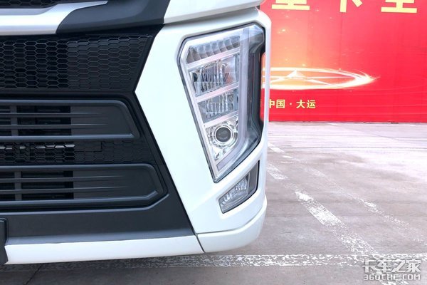 整体熏黑的中网与白色的车身形成了很好的撞色呼应,给人一种较强的视觉冲击,更能衬托出整车的气势,这样的配色风格在目前国内商用车界还是非常少有的。