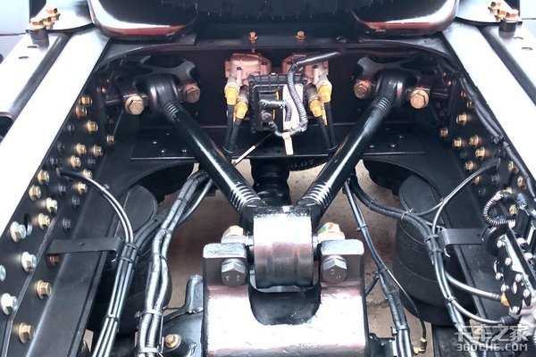 在车架后方,还看到这台车配备了V型推力杆,这样的设计能够使车辆行驶起来稳定性更高、更安全。