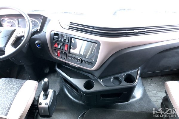 中控台上的按键多到可以用堆砌来形容,不过这些按键堆砌的还是很有看点的,从上至下,这台车配备了电子手刹、AUTO HOLD,光是这两个配置,在目前中国商用车界都算是十分少见的。电源开关被设计在了车内,能够更好方便驾驶员开启或关闭整车电源。
