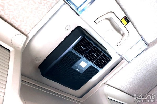 驾驶室的上半部分亮点也是颇多,这台车配备了多美达的驻车空调,夏天能够保证咱们行车途中休息,杜绝蚊虫叮咬,睡个好觉。