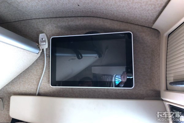 当然,睡不着也没关系,不如看个电视解解闷,在卧铺的上方还安装了电视,初步推测为智能电视,这下觉得车载大屏太小的卡友们不用抱怨了,躺在卧铺上能踏踏实实看电视。