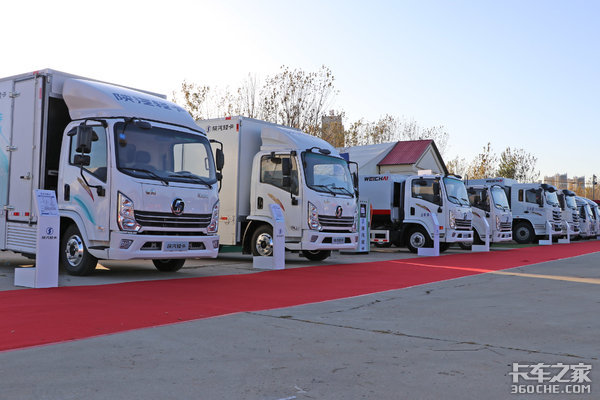 本次活动中陕汽轻卡带来了旗下多种车型,小到栏板轻卡大到仓栅中卡,从公路车领域延伸到专用车领域,从燃油车领域发展到新能源车型领域。整体产品轴距从2800到4500mm,实现蓝牌黄牌的全面覆盖,搭载潍柴动力可从110马力扩展到190马力,变速箱可选5挡、6挡和8挡,采用最新研发的汉德桥。