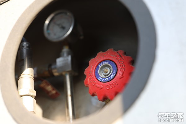 续航里程之所以如此优秀,一方面源自刚才所提到的发动机经济性,车辆所搭载的1000L气瓶也起到了很大的帮助,该气瓶的关键阀体全部采用进口产品,保证了气密性,将燃气挥发降到了最低,同时安全性也有所保障。
