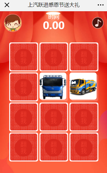 游戏非常简单,点击牌背进行翻牌,翻到两张一样的牌即可消除,所有卡牌消除完毕后完成挑战,操作时间低于30秒即可获得抽奖机会。