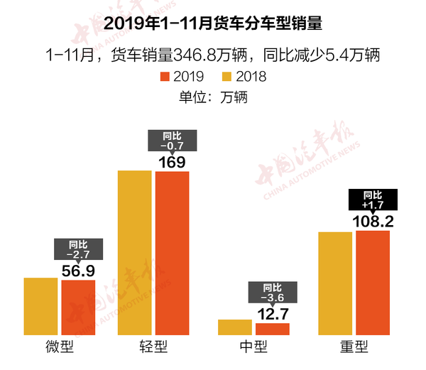 其中,重型货车本月的表现超出行业预期,销量实现10.2万辆、同比增13.8%,虽1-11月整体销量同比仍然减少,但显现出的发展态势让人欣慰和期待。