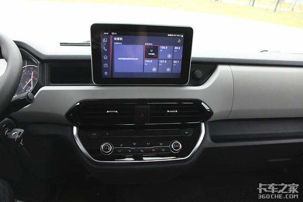 驾驶室内配备了车载大屏,屏幕尺寸达到了10.4英寸,车载大屏集成了车联网、多媒体、以及360环绕影像等,配置可以用高大上来形容,增强了车内科技感和质感,让帅铃开起来更有一种轿车的感觉。