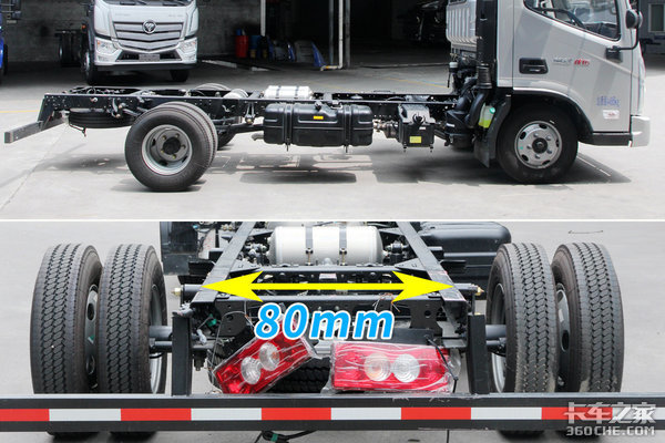 采用标准的燕尾梁是标载轻卡的常见配置,能为降低自重带来不小贡献。除了大梁以外,奥铃速运的储气筒、变速箱等部件也广泛采用了铝合金材料降低自重,加上少片簧等设计,即便安装宽体车厢也不会超重,能够正常上蓝牌。