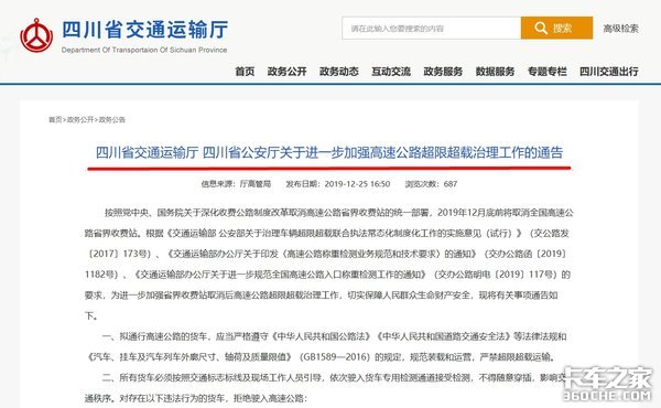 【卡车之家 原创】最近什么消息最火?高速称重检测,超载严禁驶入高速公路,全国各大省市已经拉开序幕。2020年1月1日,新规即将执行,四川同步发布最新超载治理通告!严禁超限超载运输,6轴车型无法读取OBU(ETC设备)信息的,必须提供行驶证一类的证明。