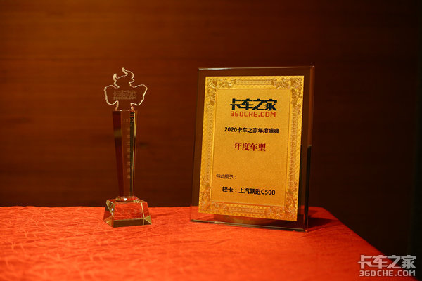 【卡车之家 原创】2020年1月10日,主题为“敬初心 至未来”的卡车之家第五届年度盛典在北京召开。在此次盛典上,上汽跃进C500荣获“卡车之家 2019年度车型”奖项。