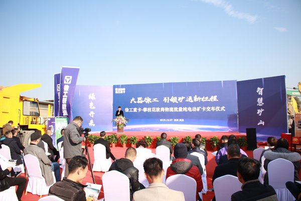 由徐工重卡携手攀枝花致尚物流有限公司共同举办的批量纯电动矿卡交车仪式在凉山州汽车城盛大开幕,本次活动以“大器徐工,引领矿运新征程”为主题,“绿色开采、智慧矿山”为目标,通过样车展示、宣传片播放、企业介绍、产品推介向凉山州各界人士生动阐释了徐工“担大任、行大道、成大器”的良好企业形象。