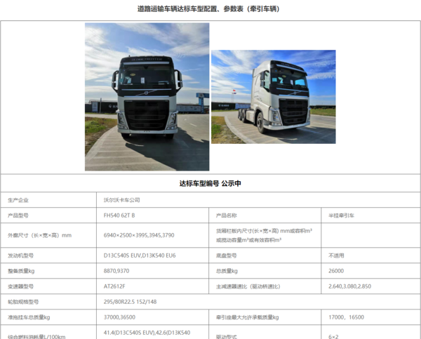 此次交通部燃油公告,一共涵盖了沃尔沃的五款车型,分别为:FH 460马力6X2车型、FH 540马力6X2车型、FM 460马力6X4车型、FM 460马力6X2车型、以及FM 420马力4X2车型。