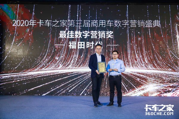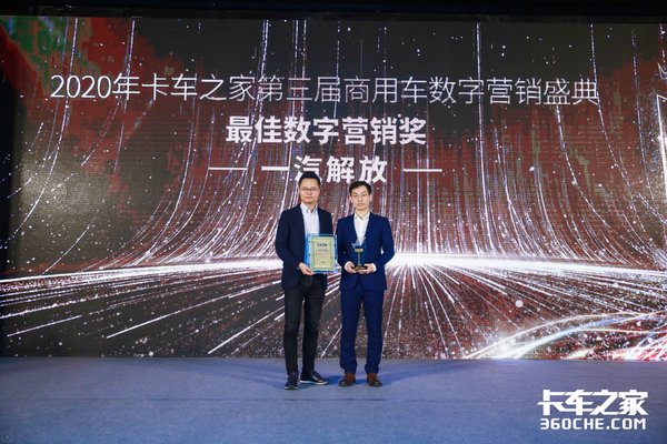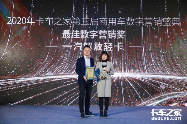 2020年1月15日,由卡车之家举办的第三届2019年度数字营销盛典在济南隆重举行。一汽解放、上汽跃进、一汽解放轻卡、长安跨越、东风轻卡、福田时代荣获主机厂“年度最佳数字营销奖”。