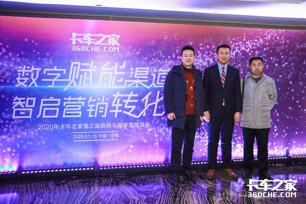 从左到右依次为一汽解放轻卡市场部部长宋高刚、卡车之家经销商营销服务中心总经理张雷、一汽解放轻卡综合部部长吴金库