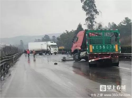 2月9日下午1点10分左右,一辆大货车行驶至余家海收费站附近,突然撞向路中间的隔离栏发生左侧翻事故,驾驶室严重变形,双侧油箱开始大量漏油导致路面瞬间浸没。同时,昆明红十字救援队俞扬昆、张晋玮、刘易玮三位队员正在前往玉溪酒精厂拉救援酒精路上,当他们发现这场车祸的时候,立即停下车来,决定先报警,同时对车祸进行现场施救。