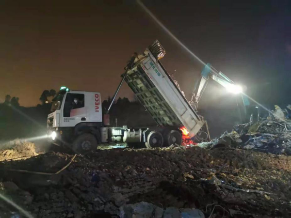 “下了雨渣土粘结,倾倒有些困难,即使公司已经调来挖掘机帮忙清理货斗里的湿土,卸货也比正常情况要慢不少。”据张松介绍,当天他们完成了100车次、共约1600方量渣土垃圾的清运。“其实大家心里都很急,我听电台里大家的声音就听得出来。但大家都又很有耐心,零故障出色完成任务,没有出一点岔子。”对于这次特殊的任务,张松认为:“微不足道,没什么好说的。”