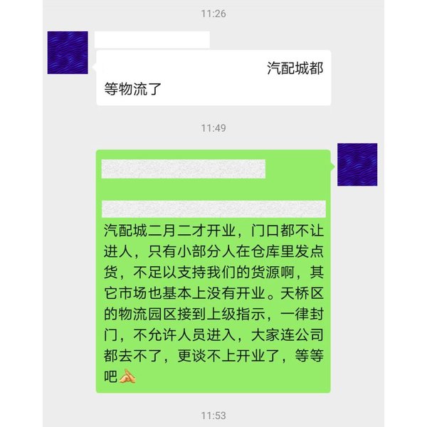 「2月10 日上午我们出去做了调研。济南的汽配市场、茶叶市场、服装市场、调料五金建材市场等等大的批发市场都在休业,我们走访的本地 50 多家物流园区也都处于封园状态,只有一两个值班看守的人。」杜兆伟告诉运联智库(ID:tucmedia)。