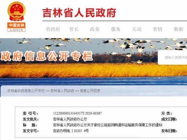 按照通知要求,2月9日上午,吉林省13个高速公路省界检查站已全部取消,封闭的65个高速公路收费站全部开通,以保证人员和物资正常通行。