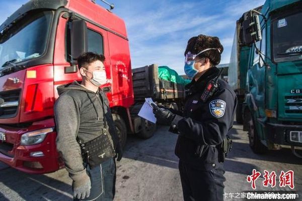 图为边检部门对公路货运车辆实施快速手续检查。 郭鹏杰 摄