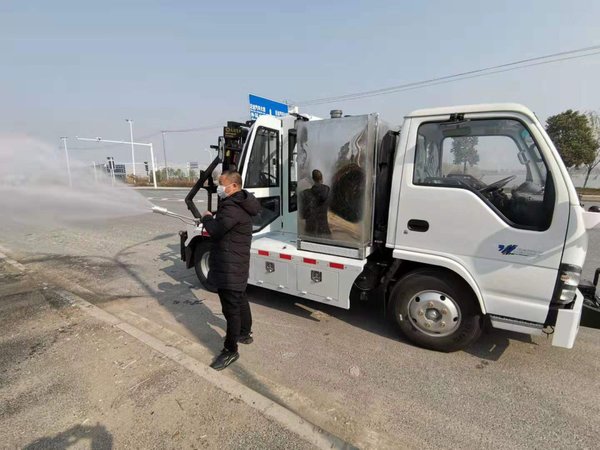 先行汽车董事长肖顺美介绍,这款车既可服务于部队抗疫、防化、运输等领域,同时也适用于城市街道、住宅小区、公园道路以及车辆冲洗消毒,而且由于其机动灵活,还非常适用于消防应急领域。