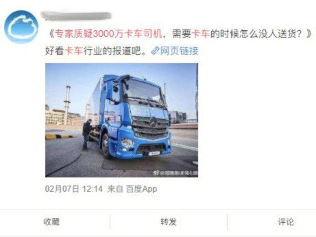 前两天家哥刷微博时看到这样一篇文章:《专家质疑3000万卡车司机,需要卡车的时候怎么没人送货?》