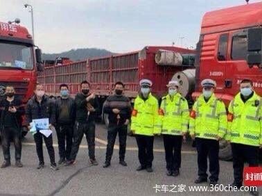 朴实善良的陕西汉子深深打动巡查交警,他们把自己配发的30个多口罩、消毒酒精送给这群讨生活的货车师傅。5人千恩万谢,发动大货车,驶向成都。
