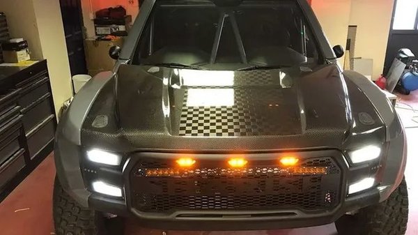 在造型上该车直接采用了福特F-150猛禽的设计语言,采用了熏黑式的进气格栅以及“C”字形的大灯。不过该车与真正的F-150猛禽相比却短小了许多,驾驶舱变为单排,货箱也进行了缩短。