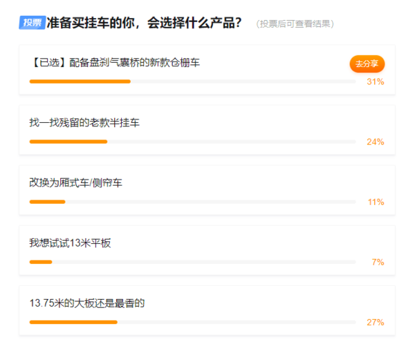 投票结果:13.75米大板车很有吸引力