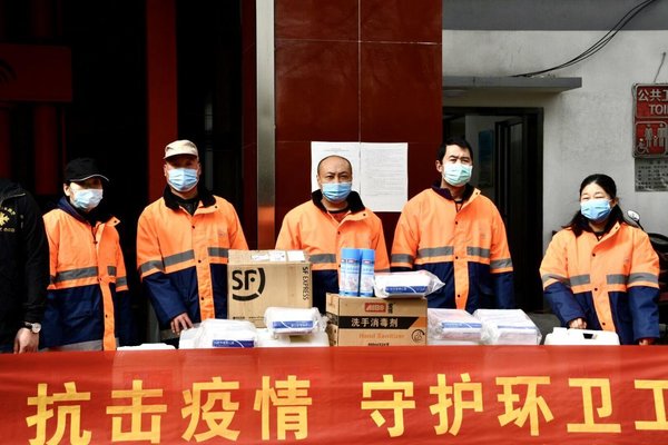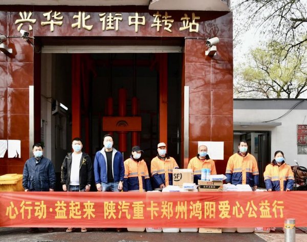 自新冠肺炎疫情暴发以来,广大环卫工人一直坚持奋战在“疫”线, 他们既是城市美容师,又是“疫”线的“逆行者”,每天为了保证城市的整洁和垃圾安全处理,一直坚守在岗位。3月13日上午,爱心企业陕汽重卡郑州鸿阳来到兴华北街环卫中转站,为二七区环卫处送来口罩、洗手消毒剂、消毒液等暖心防疫物资。