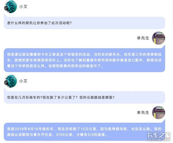 山东艾克赛尔机械制造有限公司联合卡车之家举办的“重器车桥百万体验官”活动自去年5月21日发布距今已近半年的时间了。幸运成为体验官的卡友们也已经陆续装车跑车了。体验官们的使用情况到底怎么样了,今天我们联系了其中一位体验官——单维奇先生,听听他的使用体验吧!